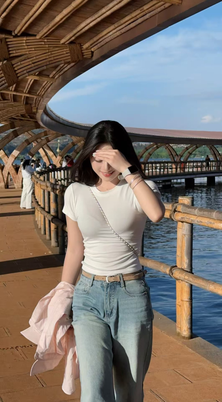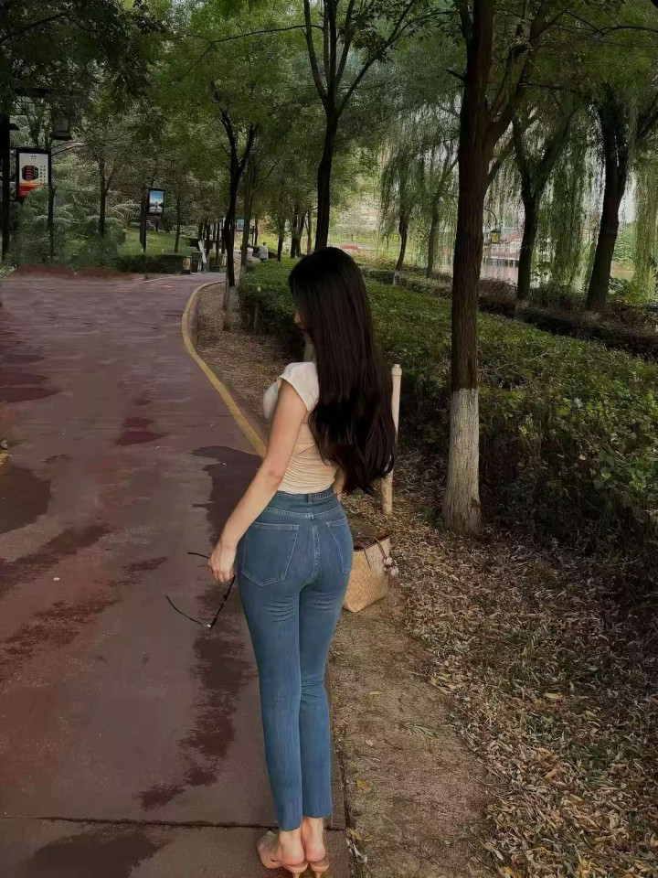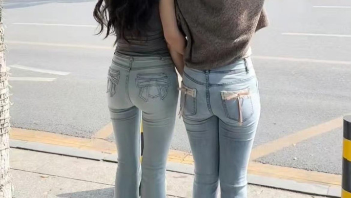 浅蓝色牛仔裤,最为常见的穿着裤。